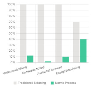 En genomsnittlig kontorskund hos Norvic sparar årligen tusentals liter vatten och eliminerar utsläpp av ca 50-100 kg kemikalier.